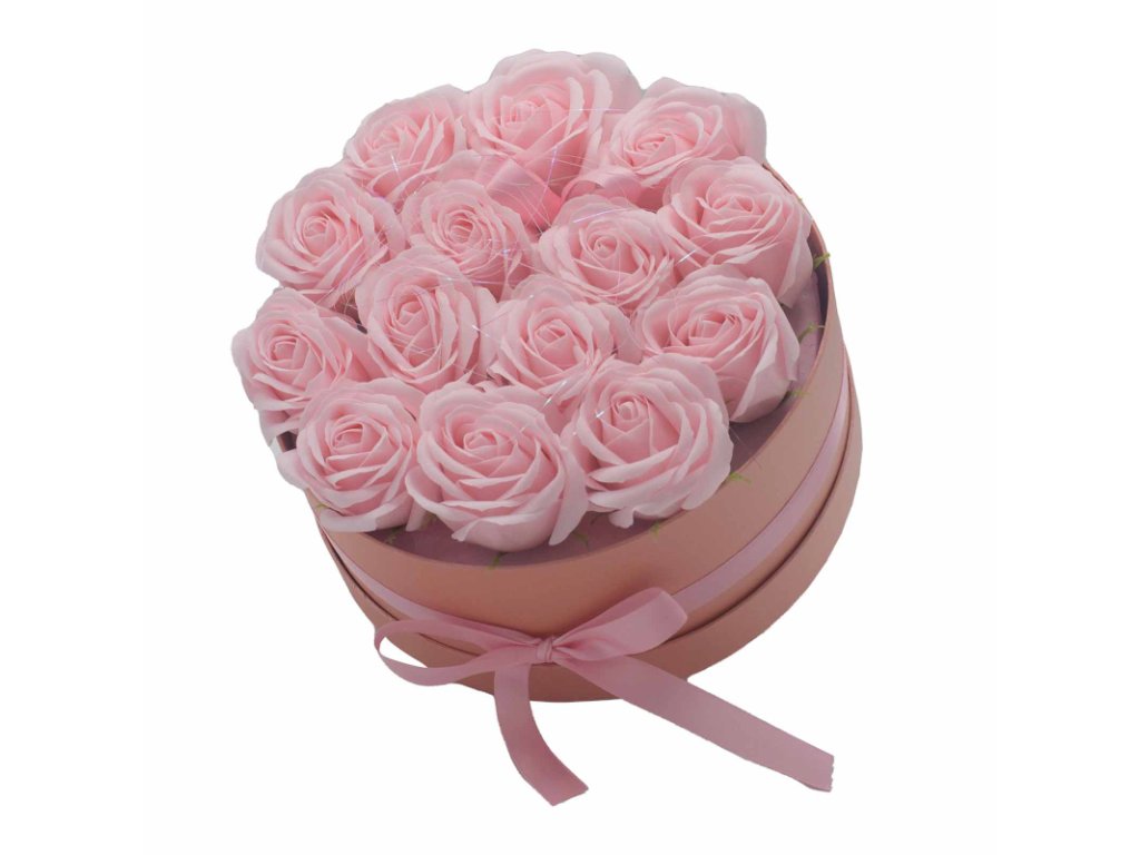 Darčekový Box z Mydlový Kvetov - 14 Ružových Ruží - Kruh