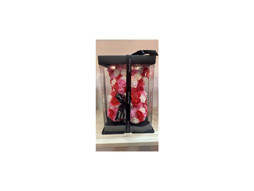 Luxusný box s mašľou vytvorí z každého medvedíka z ruží dokonalý dar.
